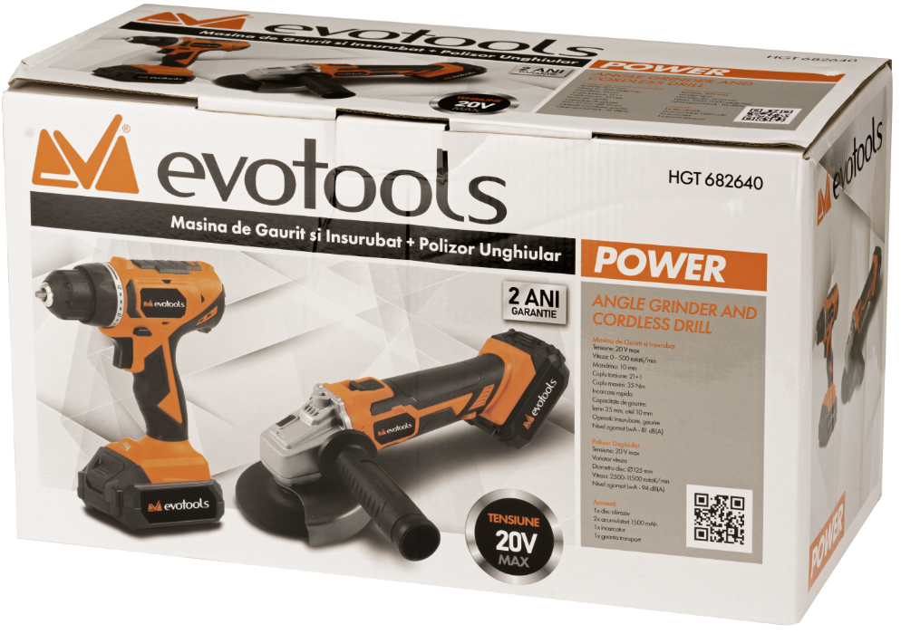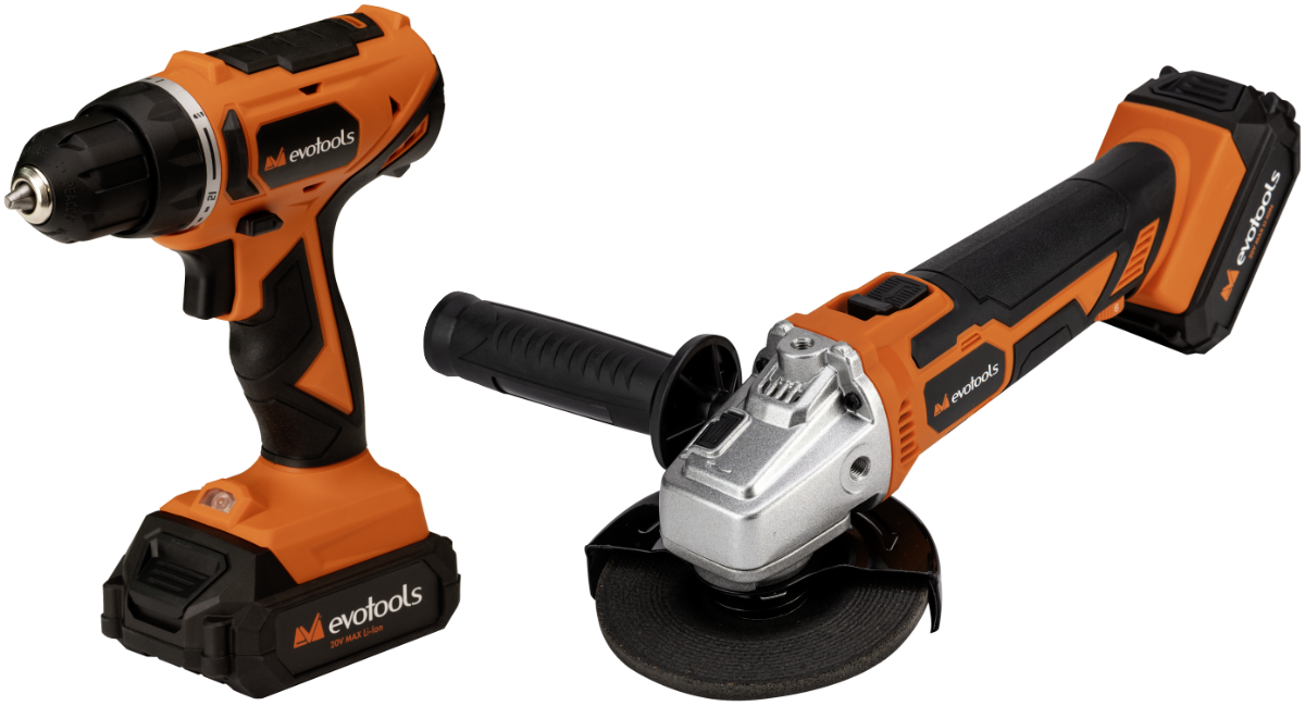 Bohrschrauber und Winkelschleifer mit 2 Akkus und Ladegerät MAX 20V POWER EvoTools®