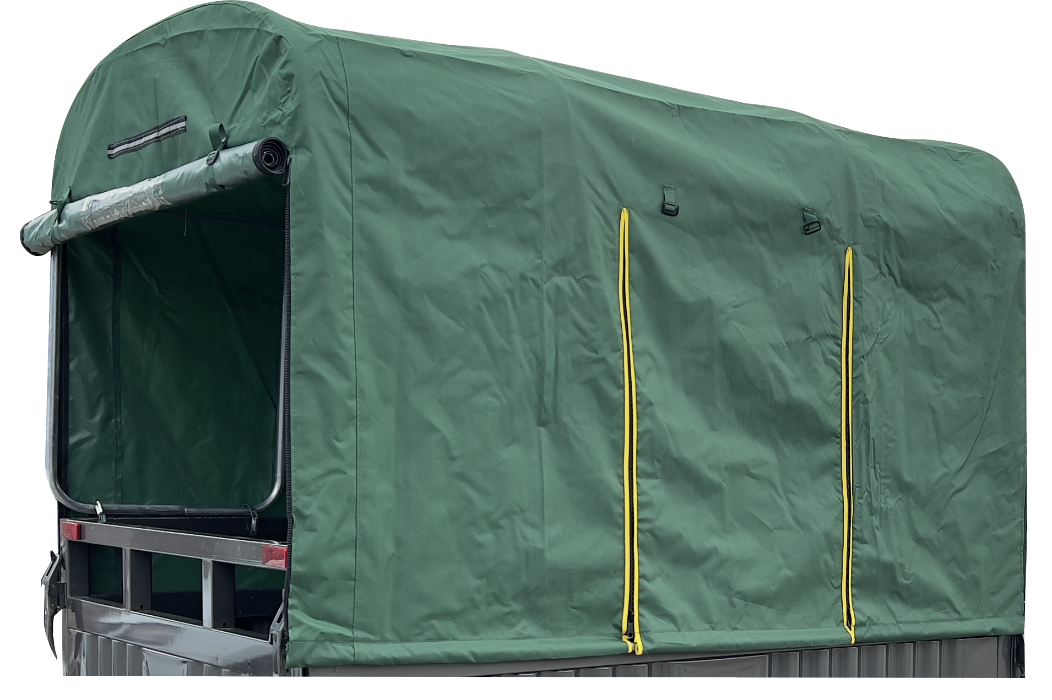 Praktisches Design: Die Plane verfügt über Reißverschlussöffnungen, die einen einfachen Zugriff auf die Ladung ermöglichen.