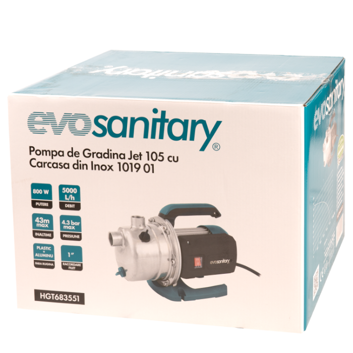 Mit einer Leistung von 800 W kann die Pumpe Wasser aus einer Tiefe von bis zu 8 m ansaugen und bis zu einer maximalen Förderhöhe von 48 m fördern und gewährleistet dabei eine maximale Fördermenge von 83 L/min.