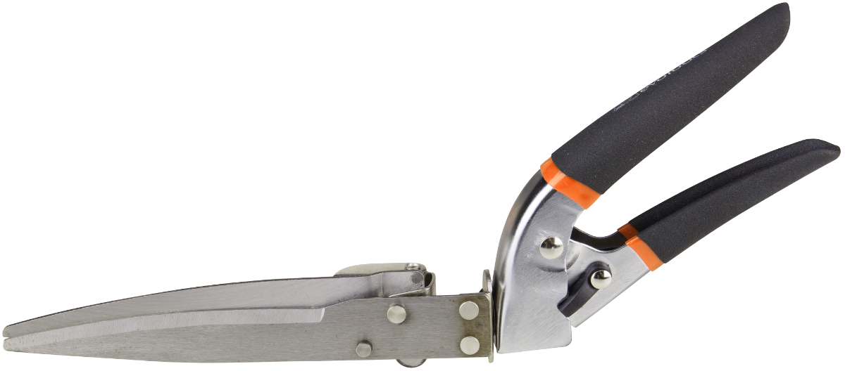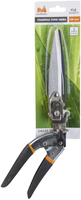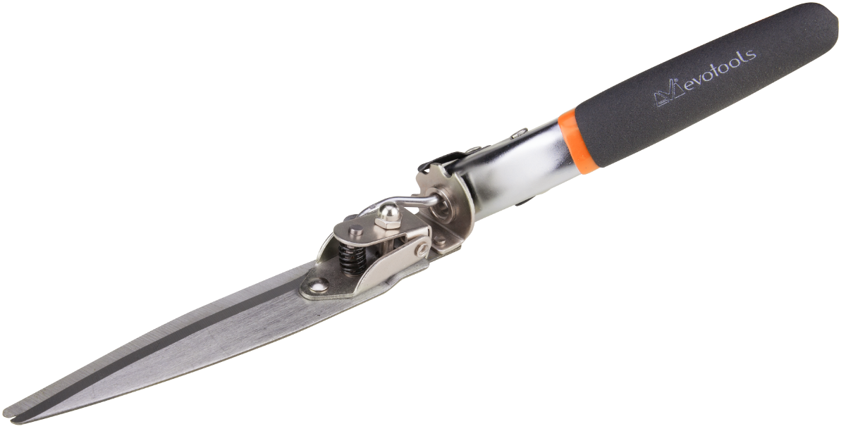 Die drehbare Grasschere EvoTools® besitzt Schneidbacken aus hochwertigem, wärmebehandeltem Kohlenstoffstahl mit einer Härte von 48-52 HRC; die Griffe bestehen aus verchromtem Stahl, beschichtet mit Polyvinylchlorid (PVC). Ergonomische Griffe sorgen für optimalen Halt und verringern das Abrutschrisiko bei der Arbeit, sodass Sie den Rasen auch an schwer zugänglichen Stellen leicht schneiden können. Die Schere verfügt über ein Verriegelungssystem für 3 Arbeitspositionen der Klingen: 0°, 45° und 90°.