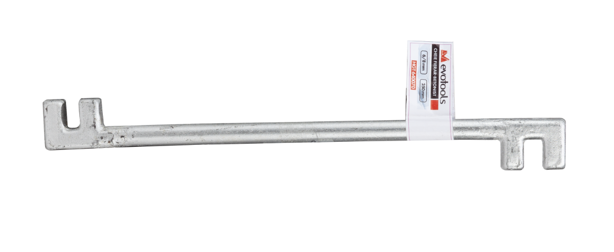 Der Eisenflechter-Schlüssel EvoTools® ist aus hochwertigem Kohlenstoffstahl gefertigt, wärmebehandelt und mit einer Zinkschicht beschichtet. Dank des hochwertigen Materials weist er eine hohe Bruch- und Torsionsfestigkeit auf.