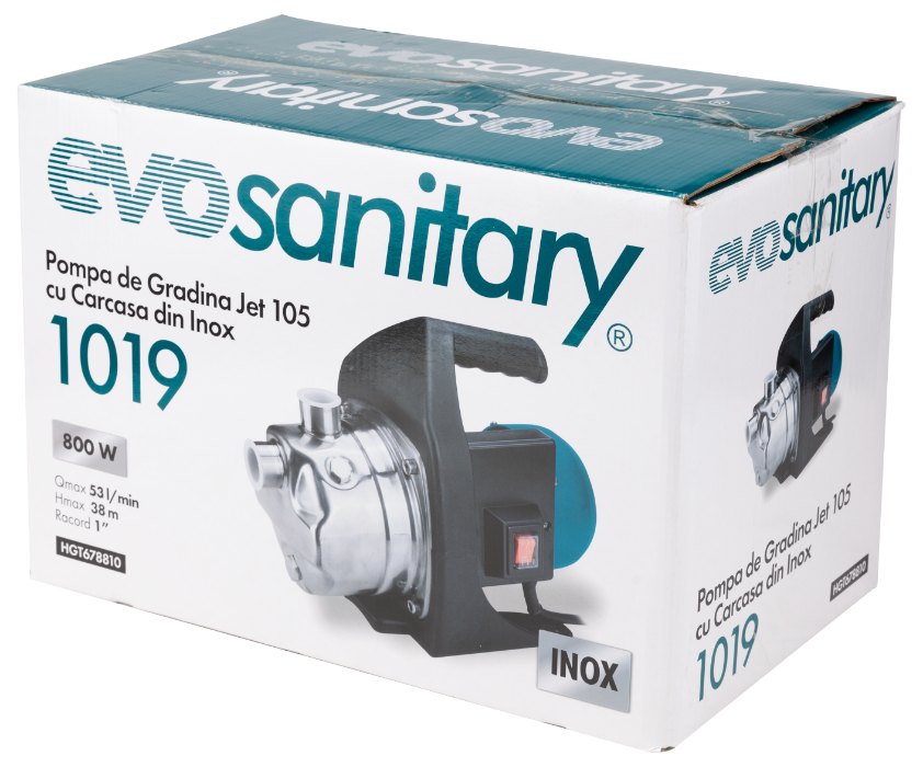 Mit einer Leistung von 800 W kann die Pumpe Wasser aus einer Tiefe von bis zu 8 m ansaugen und auf eine maximale Förderhöhe von 38 m pumpen und gewährleistet dabei eine maximale Fördermenge von 53 L/min.
